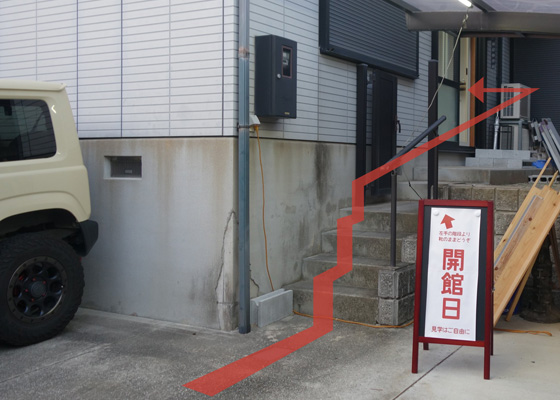 到着されましたら建屋横の小階段より靴のまま直接入室してください。インターホン等の呼出は不要です。